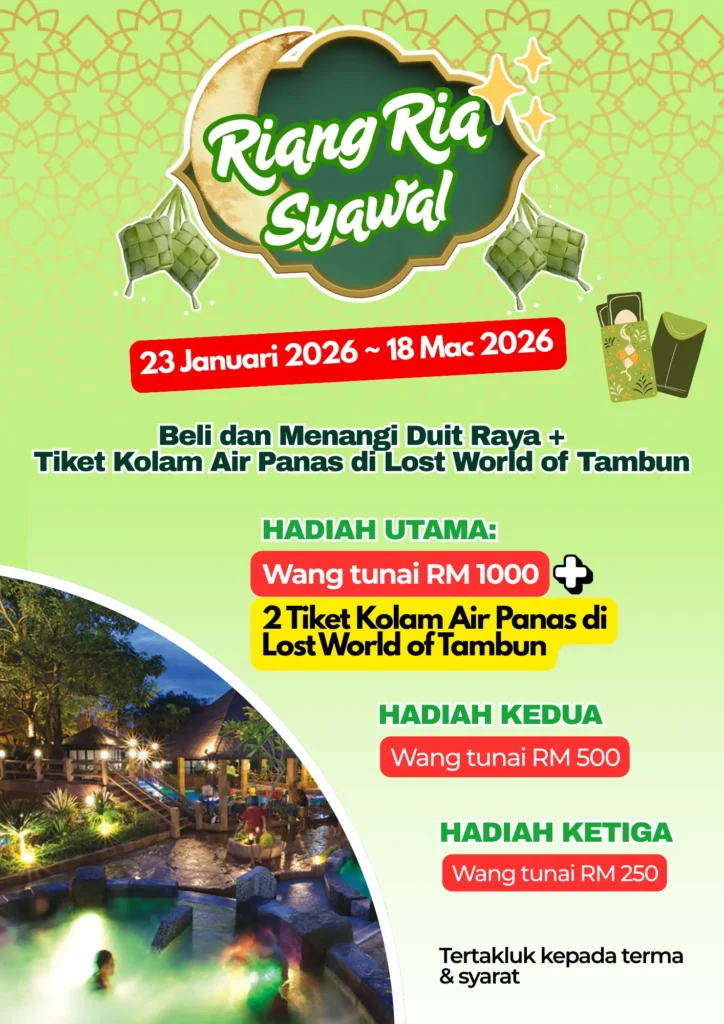MENANGI LUCKY DRAW RAYA RM 1000 TERMASUK TIKET KOLAM AIR PANAS DI THE LOST WORLD OF TAMBUN!